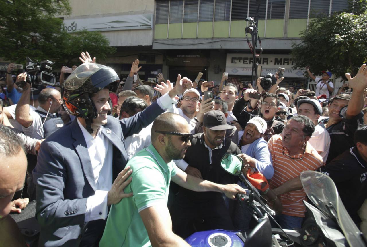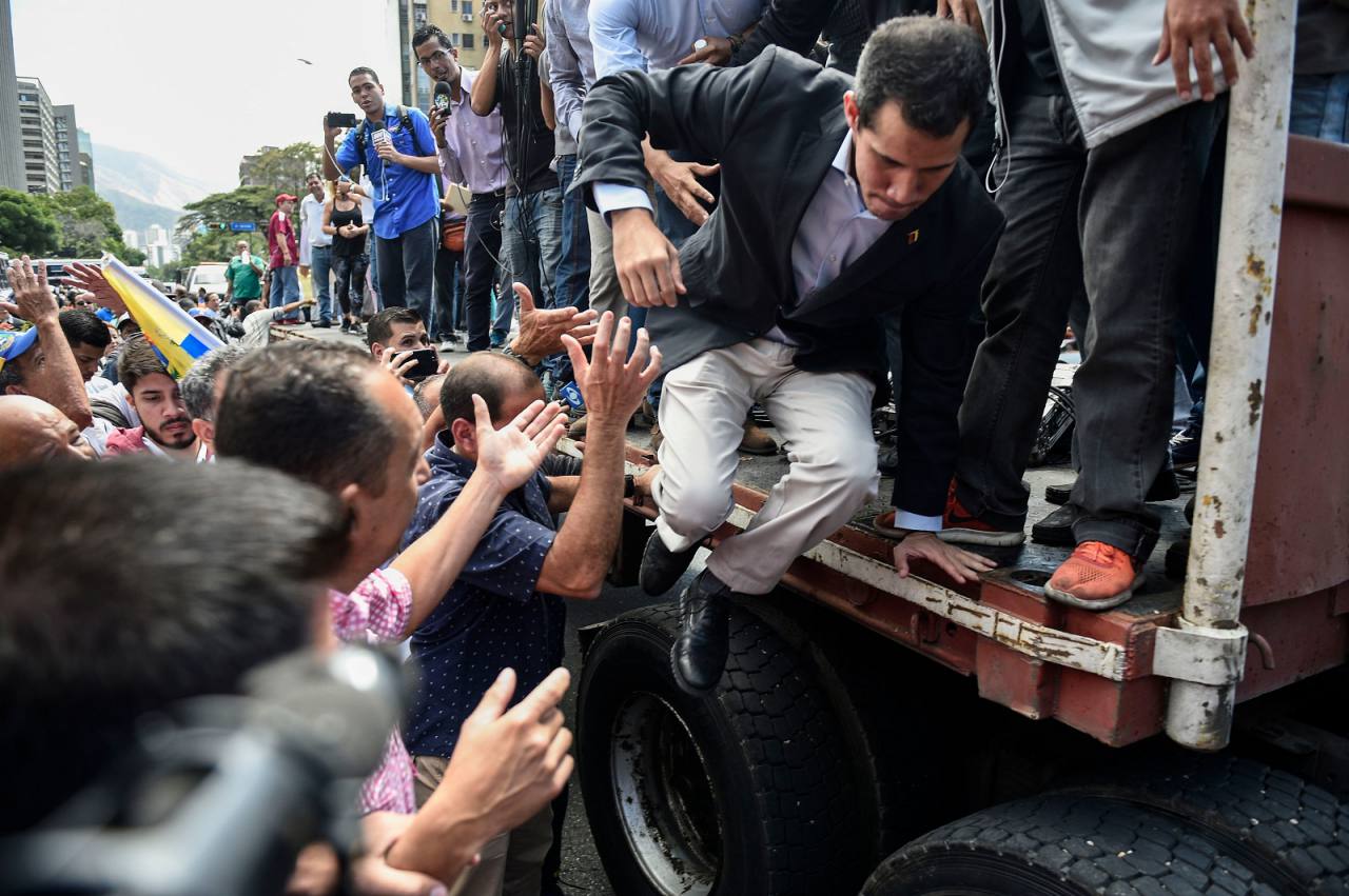 Con amplia sonrisa, se toma una selfi. Detrás, una multitud enardecida agita banderas de Venezuela. Su líder, Juan Guaidó, casi desconocido hasta hace poco, es ahora una celebridad: el milenial que desafía al presidente Nicolás Maduro con las armas mediáticas de su generación.